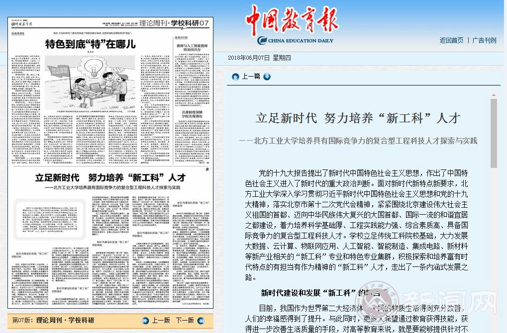 6月7日,《中国教育报》第七版“理论周刊.学校科研”刊登了bat365党委书记郑文堂的理论文章《立足新时代 努力培养“新工科”人才——bat365正版唯一官网培养具有国际竞争力的复合型工程科技人才探索与实践》。文章从中国特色社会主义进入新时代这一重大政治判断出发,分析了新时代高等教育发展的新要求,从理论和实践深入阐释了bat365正版唯一官网立足传统工科院校基础,大力发展 “新工科”专业和特色专业集群,积极探索和培养富有时代特点...