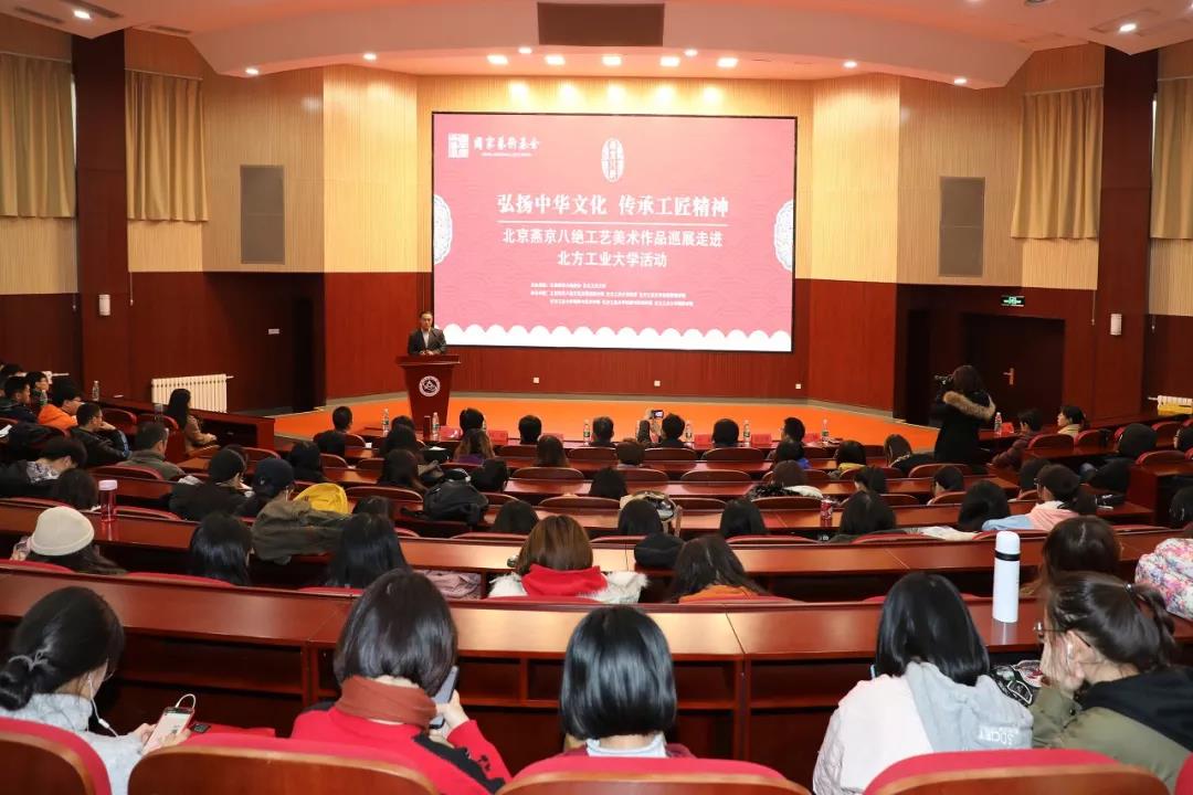 为了弘扬传统文化,让学生近距离感受并传承工匠精神,由北京燕京八绝协会和bat365联合主办的“北京燕京八绝工艺美术作品巡展”活动于11月23日中午在文化会堂启动。校党委书记郑文堂、石景山区文联主席郭明、石景山区旅游协会会长闫可,以及学校师生代表一同参加了启动仪式。工美大师和传承人万紫女士、于静女士、郭卫军先生、柏群先生也来到启动会现场。 郑文堂书记发表致辞并宣布活动正式开始。他感谢北京燕京八绝协会组织工美...