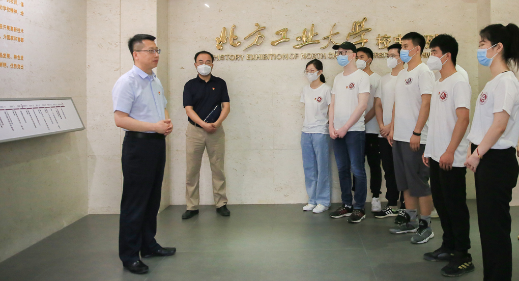“同学们好,你们即将毕业远航,今天我客串一下讲解员,跟大家分享我对校史的学习思考,我们共同重温校史中的党史,学史爱校、学史爱党……”6月20日上午,校党委书记缪劲翔与2022届毕业生代表一起走进校史馆,以“学史爱校学史爱党”为题给同学们上了一堂别开生面的校史党史学习教育课。从国立高工到北方工大,缪劲翔带同学们深情回顾了学校三迁校址、八易校名的历史沿革,旁征博引讲述了学校70多年来的不断发展壮大的光辉历程...
