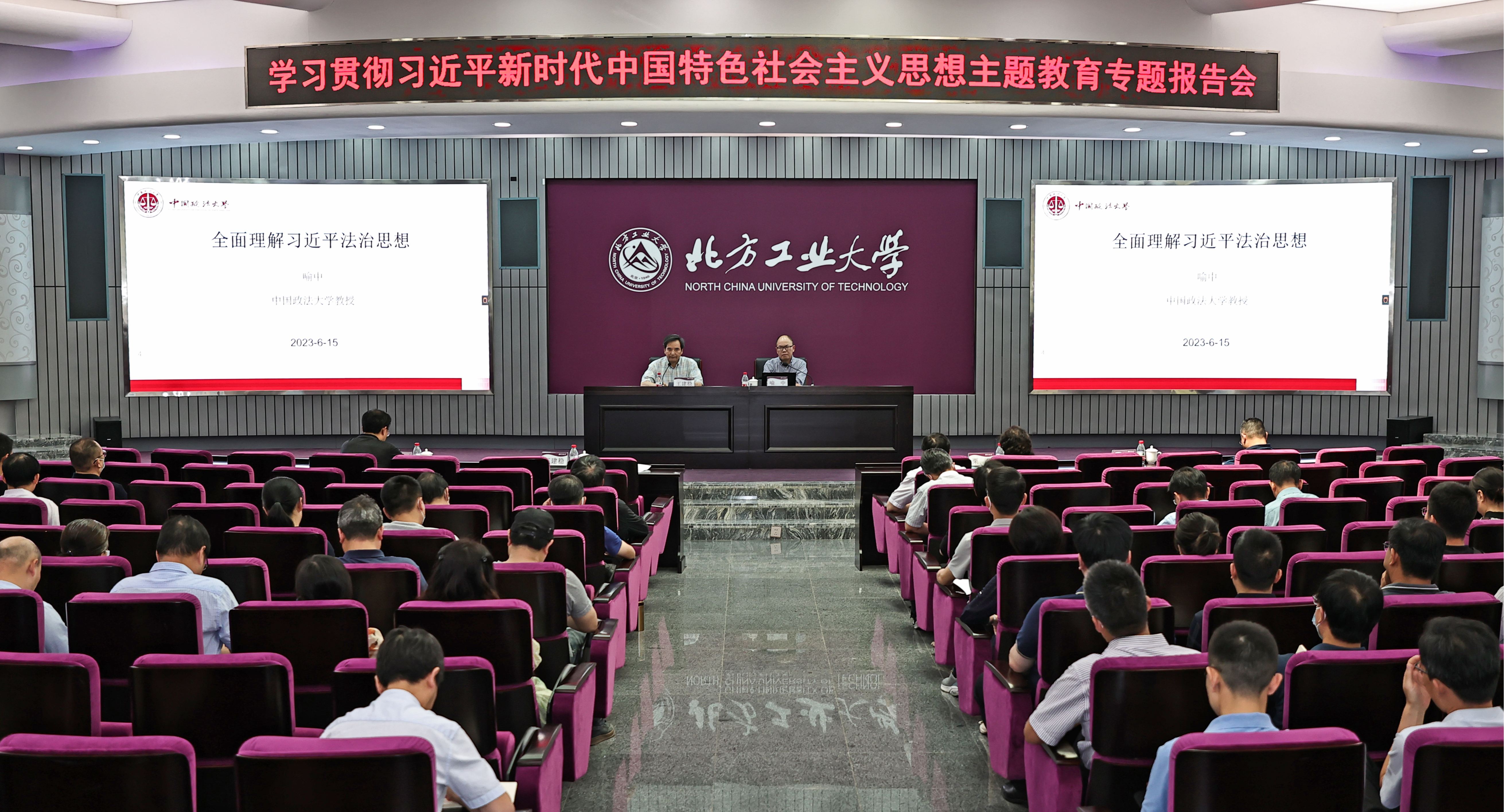 为扎实推进学习贯彻习近平新时代中国特色社会主义思想主题教育,按照学校党委工作安排,学校于6月15日下午举行学习贯彻习近平法治思想专题报告会,邀请中国政法大学习近平法治思想研究院副院长喻中教授做专题辅导报告。全体在校领导出席,学校处级干部、学院党委委员、责任教授、系主任、教工党支部书记、后勤部门经理、机关党员代表和部分学生代表参加学习。报告由党委常委、副校长王建稳主持。喻中教授以《全面理解习近平法治...