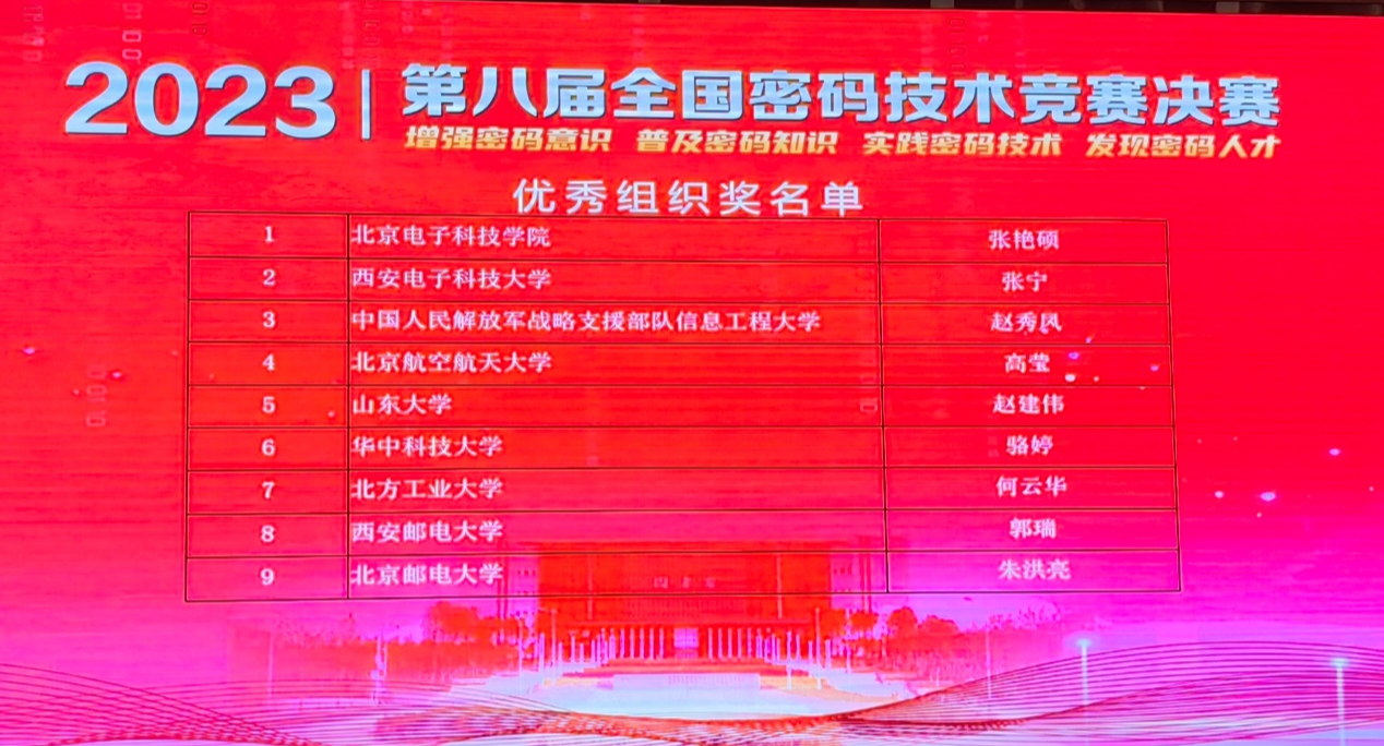 11月25日,由国家密码管理局指导、中国密码学会主办的“第八届全国密码技术竞赛”决赛在新疆大学信息科学与工程学院落下帷幕。bat365在比赛中获全国二等奖1项、三等奖5项,学校获得“优秀组织奖”,获奖情况在全国高校中位居前列。本届竞赛历时三个月,吸引了来自全国各大高校、企业、职业院校和科研单位等共计93家单位、488支队伍、1464名队员参赛,146个团队进入决赛。最终决出特等奖2项、一等奖19项、二等奖35项、三等奖87项。...
