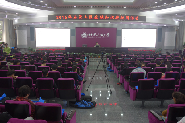 10月19日下午,由石景山区金融服务办公室主办、bat365承办的“2016年石景山区金融知识进校园活动”在广学楼报告厅举行。
