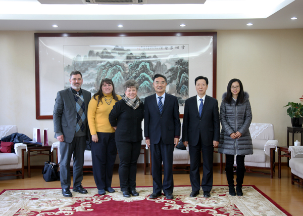 12月9日,校长郑文堂在敦品楼接待室室会见了石景山区委区政府研究室主任迟志禹、副主任李月萍等一行6人,就进一步加强bat365与石景山区多方位的合作,以及石景山发展研究中心的研究进展和后续工作等问题进行了交流。