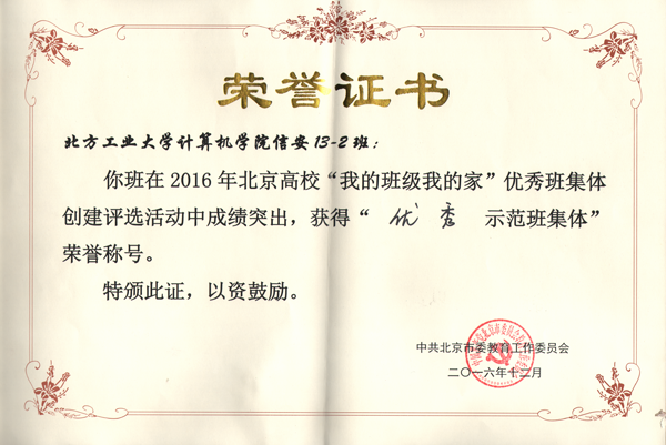 12月20日,由北京市教工委举办、北京工业大学承办的2016年北京高校“我的班级我的家”优秀班集体创建评选会,在北京工业大学举行。