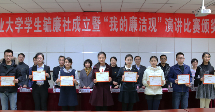12月22日下午,校团委在学生服务楼318会议室举行学生毓廉社成立暨“我的廉洁观”演讲比赛颁奖仪式。