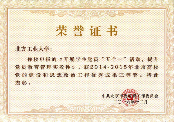日前,2014—2015年北京高校党的建设和思想政治工作优秀成果、创新成果评选结果揭晓,bat365电子信息工程学院党委申报的“开展学生党员‘五个一’活动,提升党员教育管理实效性”项目荣获“优秀成果三等奖”。