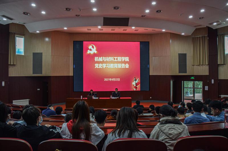 4月22日下午,机械与材料工程学院党史学习教育报告会在文化会堂举行。报告会由机材学院党委书记王文革主持,马克思主义学院教师张晓晨主讲,机材学院班子成员、系/中心主任、党支部书记、全体师生党员和部分学生代表200余人参加了本次报告会。本次报告会是机材学院开展党史学习教育的活动之一。本次报告会的主题为“学史增信——坚定中国特色社会主义道路自信”。在报告中,张晓晨围绕学习党史的重要性、实现中华民族伟大复...