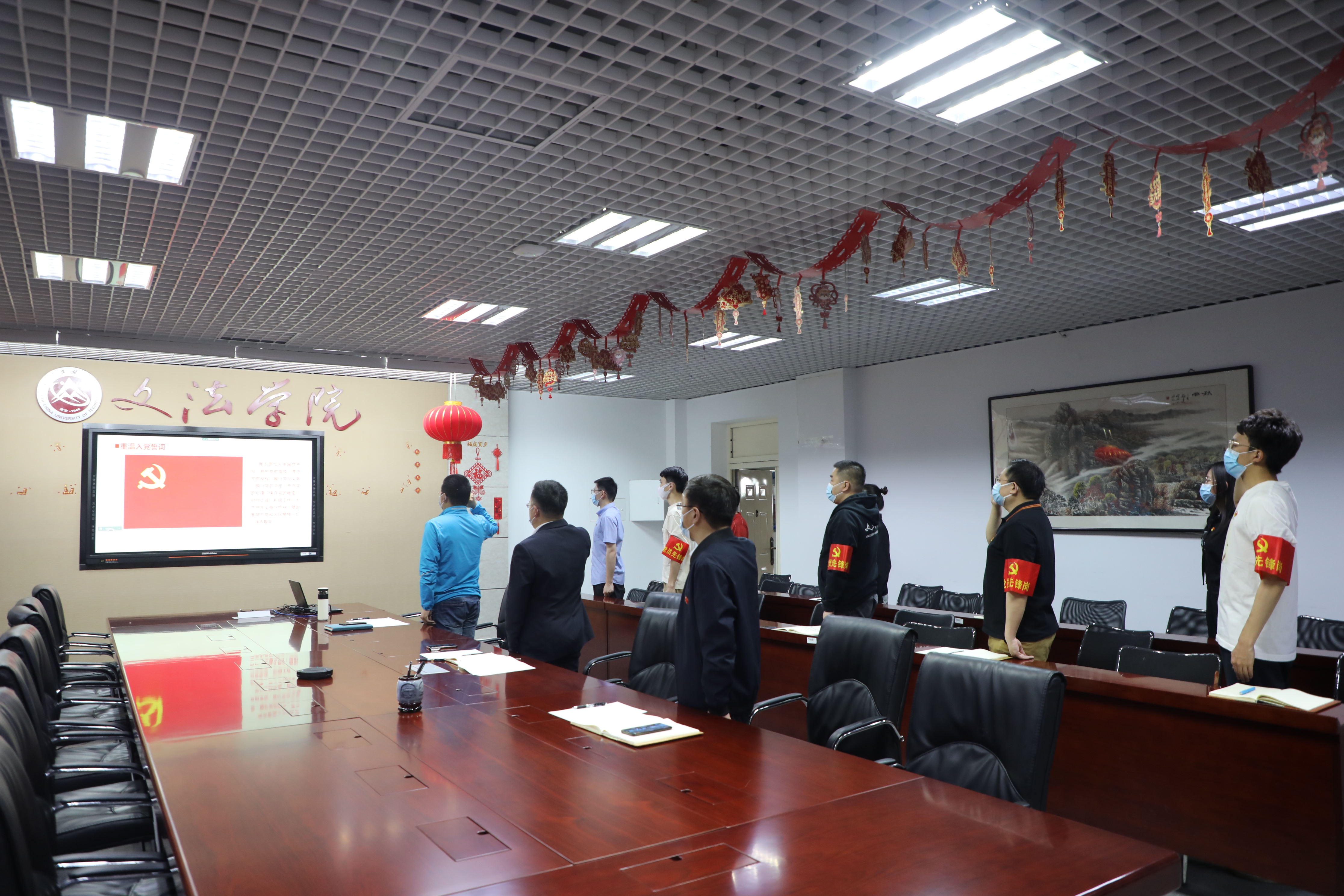 一个支部就是一座堡垒,一名党员就是一面旗帜,一名团员就是一团火焰。为坚决打赢疫情防控“阻击战”、“保卫战”,进一步做好校园疫情防控工作,让党旗、团旗在疫情防控一线高高飘扬,5月5日上午,文法学院疫情防控青年先锋队暨志愿服务队临时党支部成立大会在瀚学楼710以“线下、线上”相结合方式召开。学院党委书记袁凤识、副书记刘祥坠,学院疫情防控青年青年先锋队暨志愿服务队全体成员参加了会议。会议由学院团委书记单连...