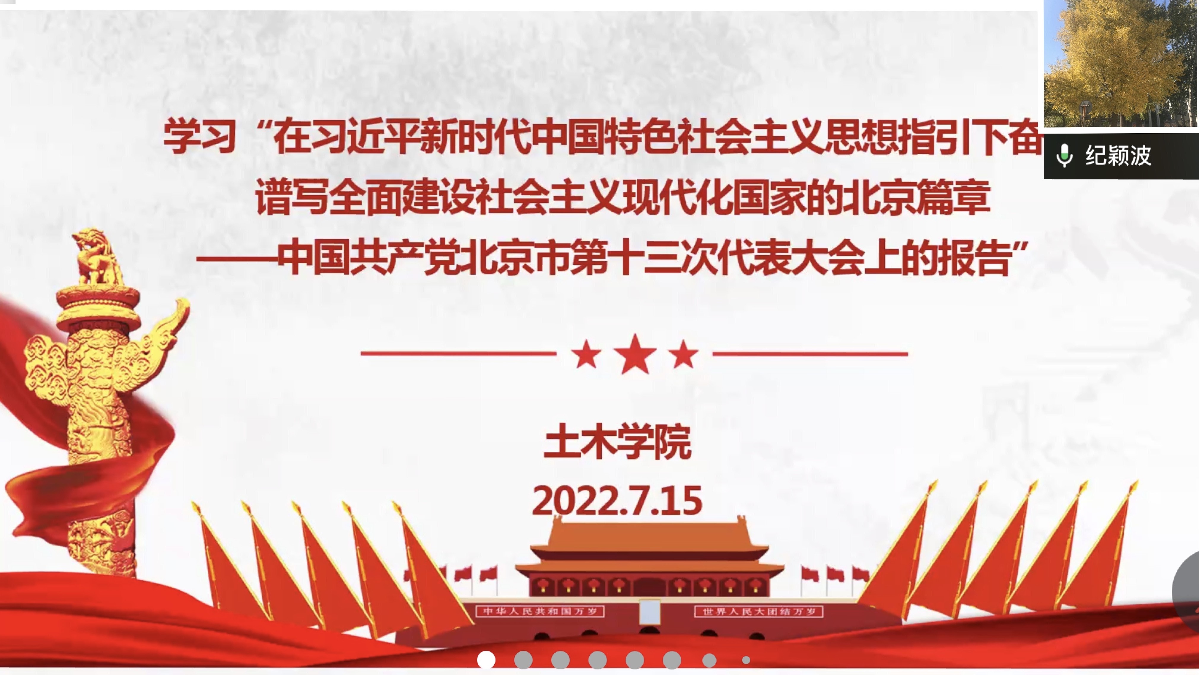 7月15日,土木工程学院通过网络组织党员学习北京市第十三次党代会报告,学院院长纪颖波领学,学院党委委员、系主任、副主任、党支部书记共计26人参加了学习。学习会由学院党委书记刘婉立主持,纪颖波从深入落实首都城市战略定位,首都功能不断优化提升等十个方面对北京过去五年的工作进行了回顾,表示我们要清醒地认识困难挑战,从大力推动新时代首都发展,努力在全面建设社会主义现代化国家新征程上走在前列;牢牢把握首都城...