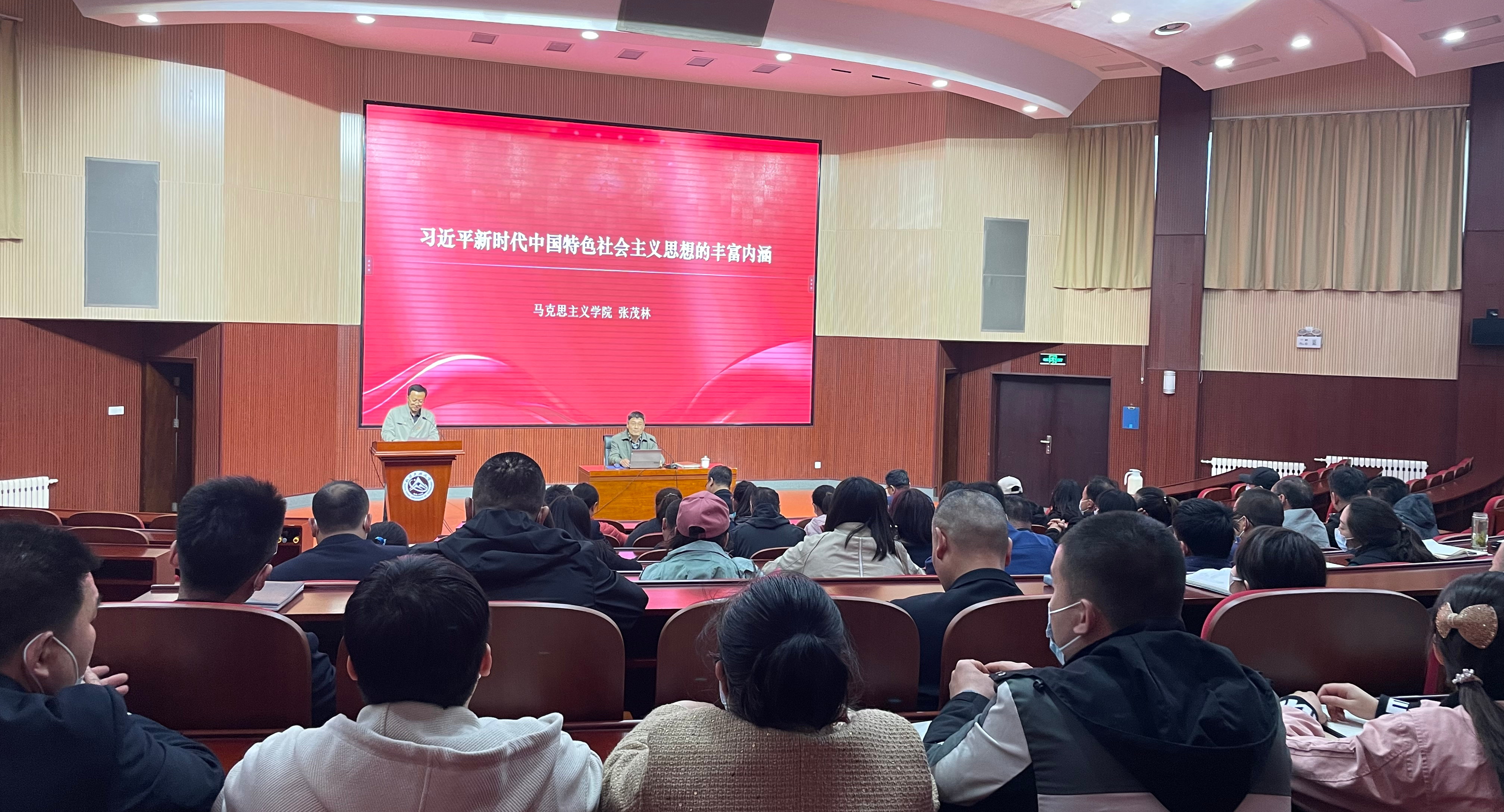 为深入学习贯彻习近平新时代中国特色社会主义思想,扎实推进后勤系统主题教育工作有序展开,4月14下午,后勤党委邀请马克思主义学院党委书记张茂林讲授专题党课,后勤系统党员干部、党员发展对象、入党积极分子共90余人参加党课。张茂林以“习近平新时代中国特色社会主义思想的丰富内涵”为题,运用大量的历史资料、翔实的数据和生动的案例,详细解读了习近平新时代中国特色社会主义思想的创立时代背景、历史方位、实践基础和基...