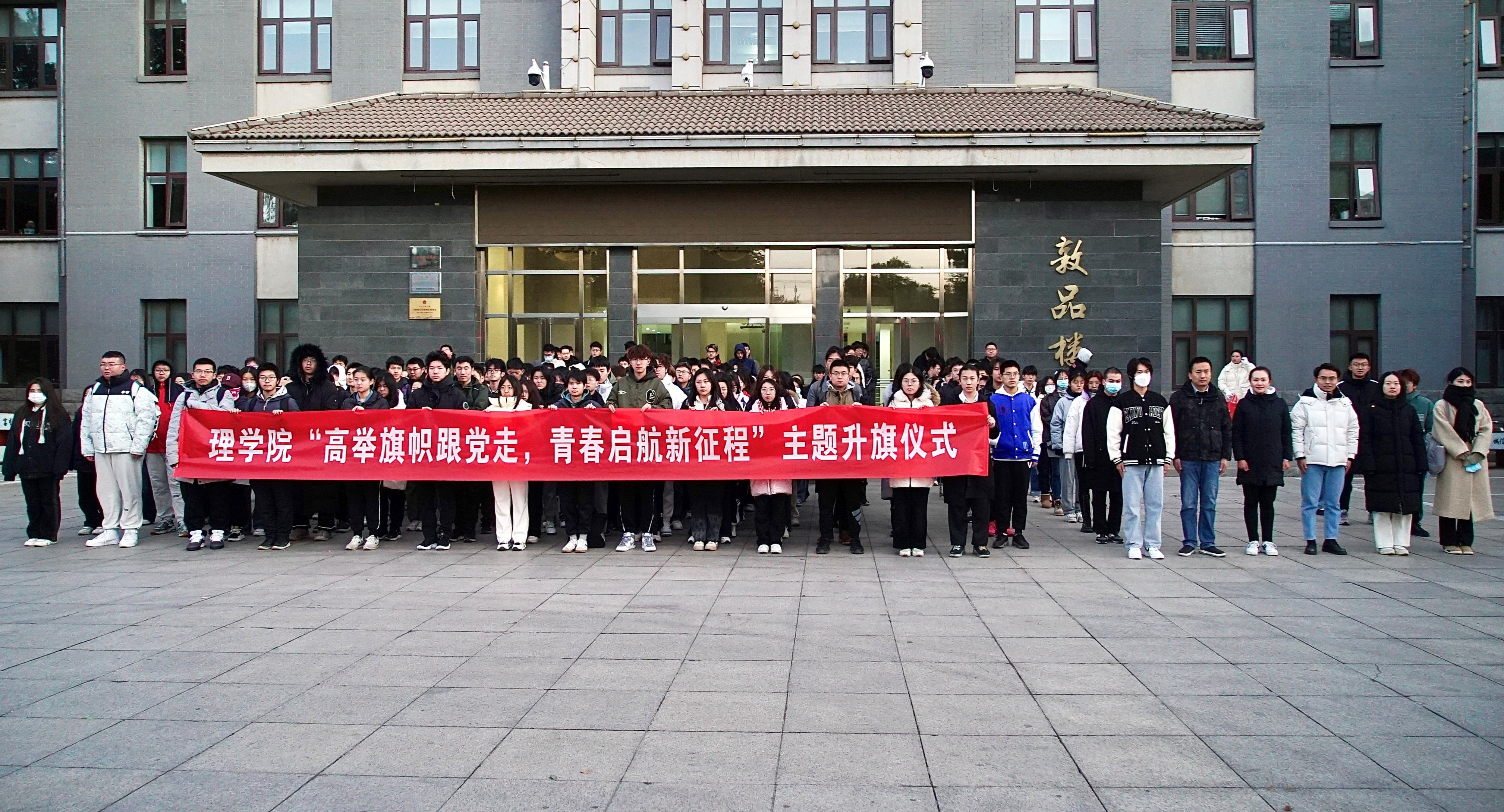 为深入推进新生引航工程,激发学生爱国热情,涵养学生进取品格。11月13日清晨,理学院举行“高举旗帜跟党走青春启航新征程”主题升旗仪式。理学院党委副书记贺映勇、院团委书记夏丹梅、全体辅导员、新发展学生党员、团学干部及23级新生共230余人参加了升旗仪式。国旗班的同学们迈着整齐划一、铿锵有力的步伐,护送五星红旗正步走向旗杆,全体师生面向国旗肃立致礼。伴随着慷慨激昂的《义勇军进行曲》,师生们注视着五星红旗冉冉...