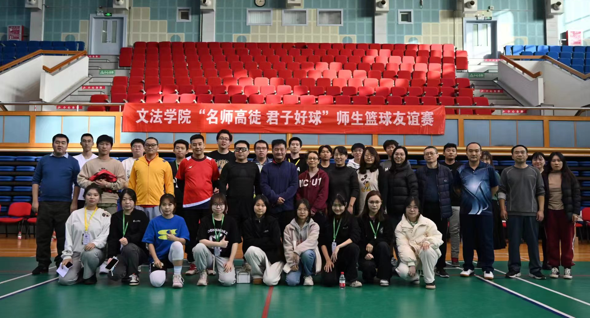 为加强师生间的友好交流,丰富校园生活,加强运动理念,近日,文法学院“名师高徒·君子好球”师生篮球友谊赛在学校体育馆二层顺利举行,文法学院老师和学生代表等80余人参加和观看了比赛。参与本次比赛的两支队伍分为教职工代表队与学生代表队,以5v5对抗的形式进行比赛,经过四节的激烈角逐,教职工代表队最终以39:35的成绩取得了本场比赛的胜利。通过现场观众投票与球员场上表现综合评定,最终确定两支队伍的最有价值球员,分...