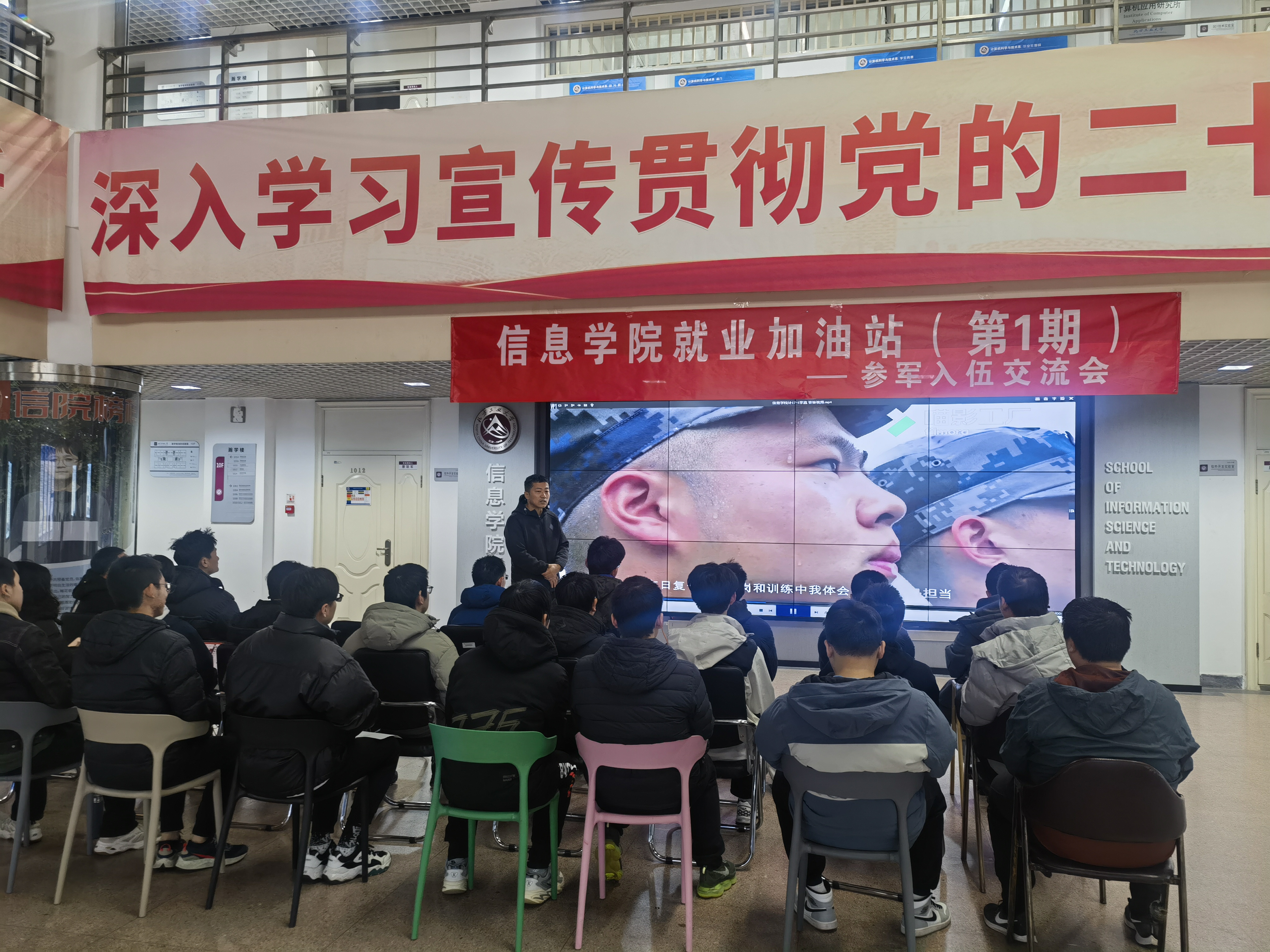 为进一步聚焦学生就业需求,精细化开展毕业生就业服务工作,信息学院于12月14日在瀚学楼10层大厅,举办信息学院“就业加油站”第一期。本次活动针对明天的春季征兵,采用交流沙龙的形式,主题是毕业生参军入伍。武装部干部苏宁、就业辅导员李伟、陈煦婷、魏静以及学院40余名2024届有意向参军入伍毕业生参加了本次活动。信息学院高度重视毕业生就业和征兵工作,鼓励广大毕业生要积极响应国家号召,投身火热军营,把青春热血挥洒...