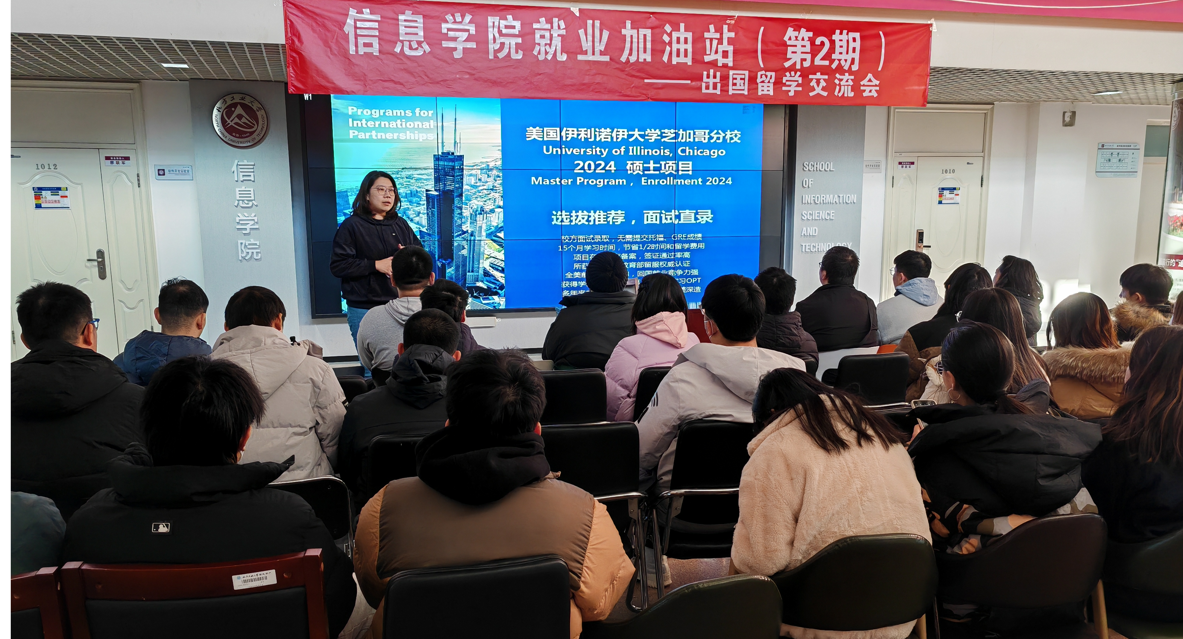 为帮助信息学院2024届毕业生深入了解留学的相关信息,拓宽同学们国际视野,帮助毕业生职业规划。12月19日信息学院邀请了伊利诺伊大学芝加哥分校(UIC)硕士项目高级顾问高婧雅,在瀚学楼10层大厅举办了“就业加油站”(第2讲)——出国留学经验交流沙龙。信息学院党委副书记陈卫、就业辅导员李伟、陈煦婷以及2024届毕业生30余人参加。陈卫对UIC硕士项目高级顾问高婧雅长期以来对学院就业工作的支持表示感谢,向高婧雅老师颁发了信...