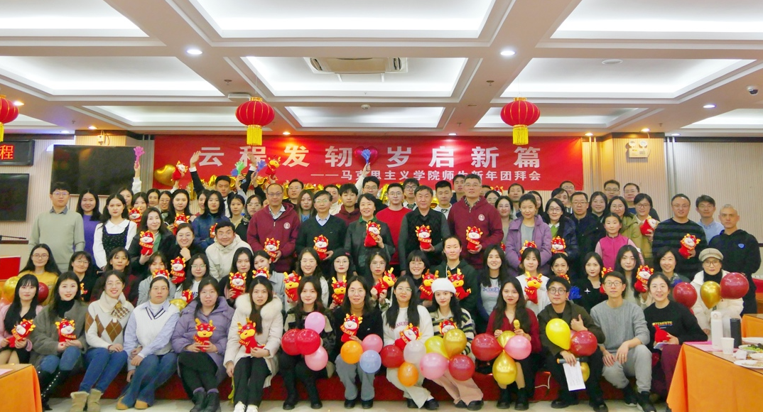 岁寒又冬至,团圆正当时。12月21日,马克思主义学院举办师生新年团拜会。校党委副书记田红芳,校党委常委、宣传部部长高国伟出席活动。马院班子成员、研究生导师、全体师生参加活动。大家欢聚一堂,包饺子话家常,每个人脸上都洋溢着灿烂的笑容,在欢乐、温馨的气氛中大显身手。托住饺子皮、取一勺饺子馅、捏好饺子皮,圆形、月牙形、花边形的饺子跃然手上,在岁末之际共享温情时光。充满活力的开场舞《美丽中国》拉开了联欢会...