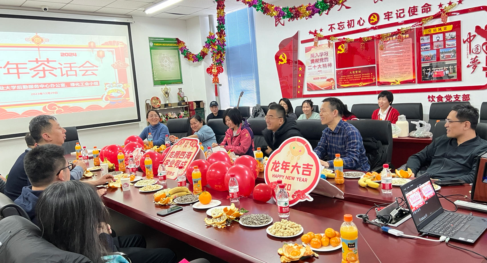 岁序更替,华章又新,新的一年,如约而至。12月28日,服务中心以工会小组为单位举办了2024年迎新茶话会。后勤党委书记郑泰平、服务中心总经理张加强等部门领导分别深入各茶话会现场,与服务中心教职工欢聚一堂,共话发展,并为教职工送去了新年祝福。服务中心各工会小组提前谋划、精心组织,为迎新茶话会带来精彩节目和游戏。学生公寓服务部曲艺表演《三句半》、朗诵《新的一年,新的期待》、表演舞蹈《科目三》等节目展示了员...