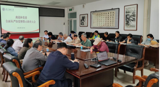 为了落实学校2024年全面从严治党工作及警示教育大会精神,推进党纪学习教育,5月9日下午,离退休党委召开全面从严治党工作暨警示教育大会,离退休党委书记赵永兵主持会议并讲话。离退休党委委员,各支部书记、委员以及离退休工作处全体工作人员共30余人参加会议。与会人员首先观看了《必由之路——以首善标准推进全面从严治党纪实(第一集看北京首先从政治上看)》警示教育宣传片,通过观看政府、高校等领域的典型案例,进一步...