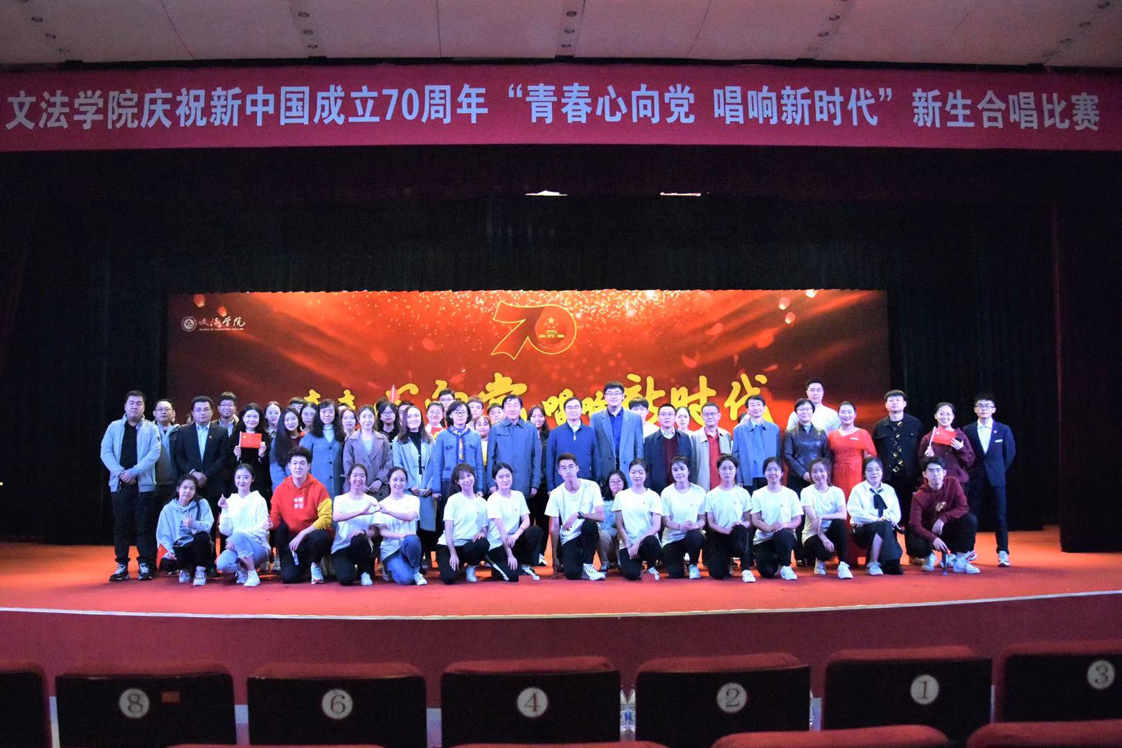 为深入推进“不忘初心 牢记使命”主题教育,激励和引领广大青年学子大力弘扬以爱国主义精神,激发青年学生以实际行动向新中国70周年华诞献礼,文法学院于10月22日晚在图书信息楼报告厅举办了“青春心向党,唱响新时代”主题新生合唱比赛。校学生工作部部长高国伟、副部长赵帅,校团委副书记陈国秀,文法学院党委书记袁本文、副院长袁凤识、党委副书记刘祥坠、各系主任、全体辅导员老师、2019级班导师、全院党员与积极分子以及...