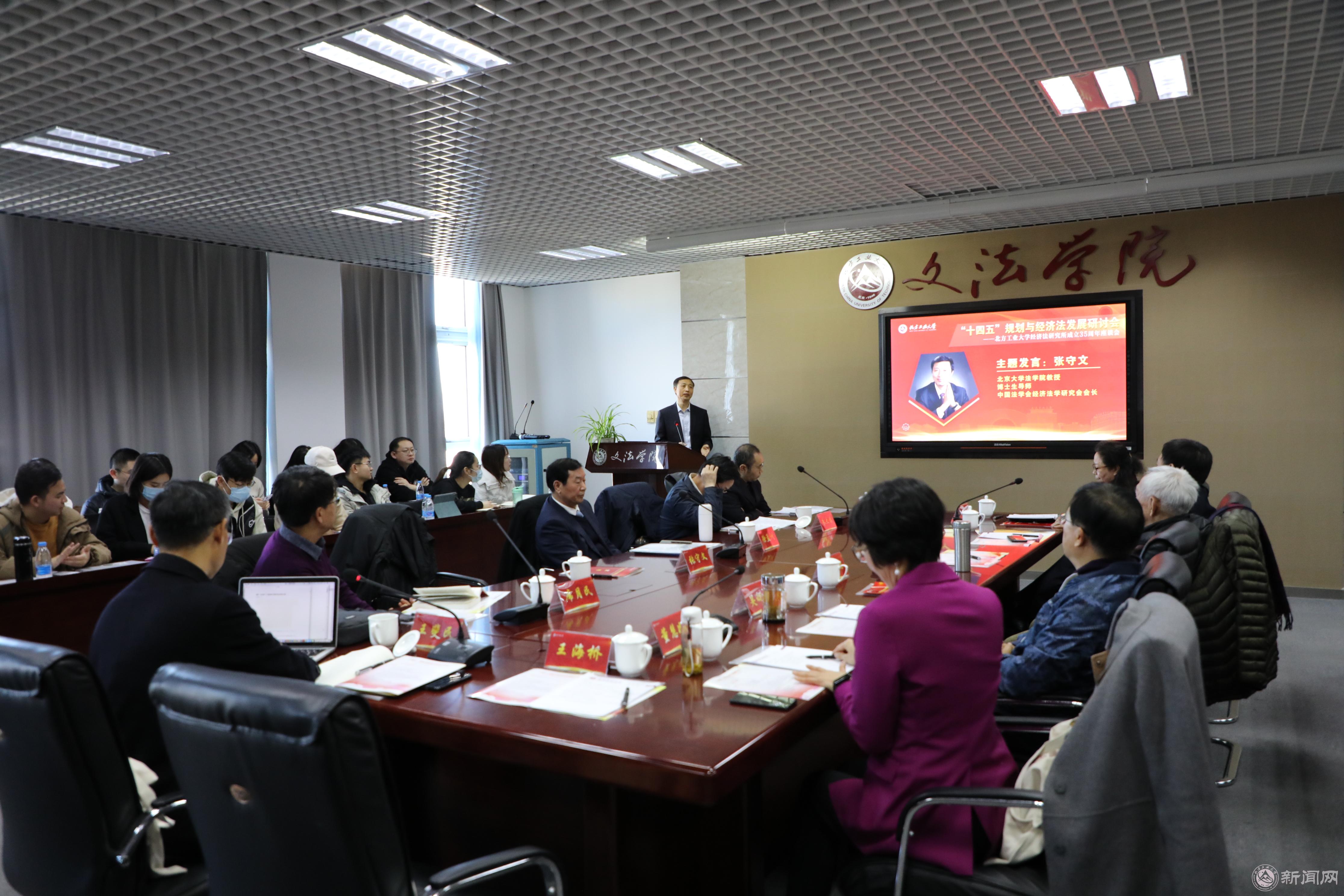12月4日,“十四五”规划与经济法发展研讨会暨bat365正版唯一官网经济法研究所成立35周年座谈会在瀚学楼710召开。副校长王建稳,文法学院院长、教授刘泽军,经济法研究所原所长、教授张士元,北京大学法学院教授、中国法学会经济法学研究会会长张守文,中国人民大学法学院教授、bat365正版唯一官网客座教授徐孟洲,中国人民大学法学院教授、北京市经济法学会会长朱大旗,中国社会科学院法学所教授、中国社科院法学所经济法室主任席月民,首都经贸大学法学院院长、教授张世君,经济法研究所所长、教授董慧凝,法律系系主任、教授王海桥及部分法律系教师、研究生40多人参加了本次研讨会。