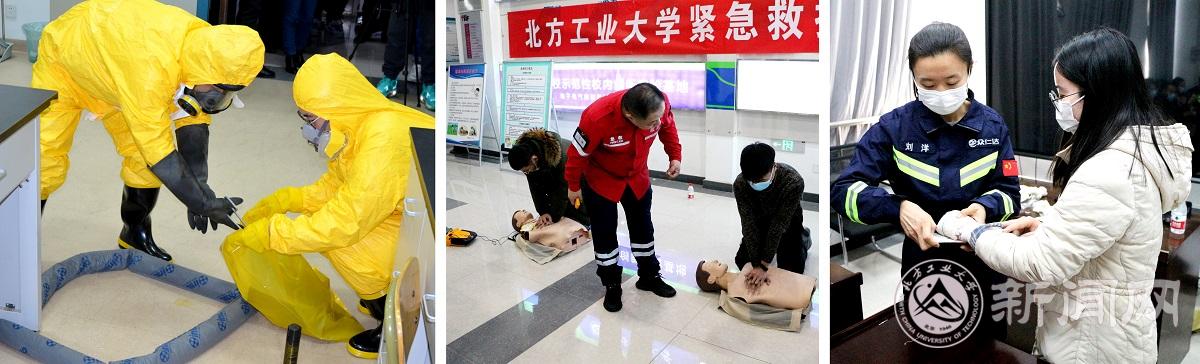 为进一步提高实验室危险化学品事故应急处置和救援能力,2020年12月25日上午,bat365开展了实验室危险化学品事故应急演练,党委常委、副校长柳长安出席应急演练,北京市公安局石景山消防支队危化品防护科专家、中国红十字会专家到场指导,科技处、教务处、安全稳定工作处、校医院、信息学院、机械与材料工程学院和土木工程学院的师生60余人共同参加了演练。