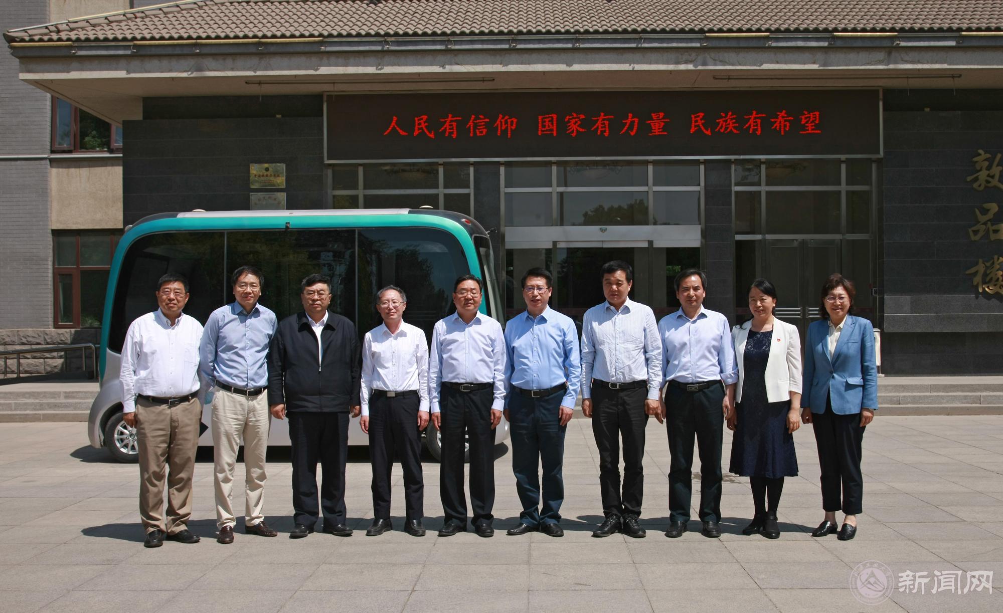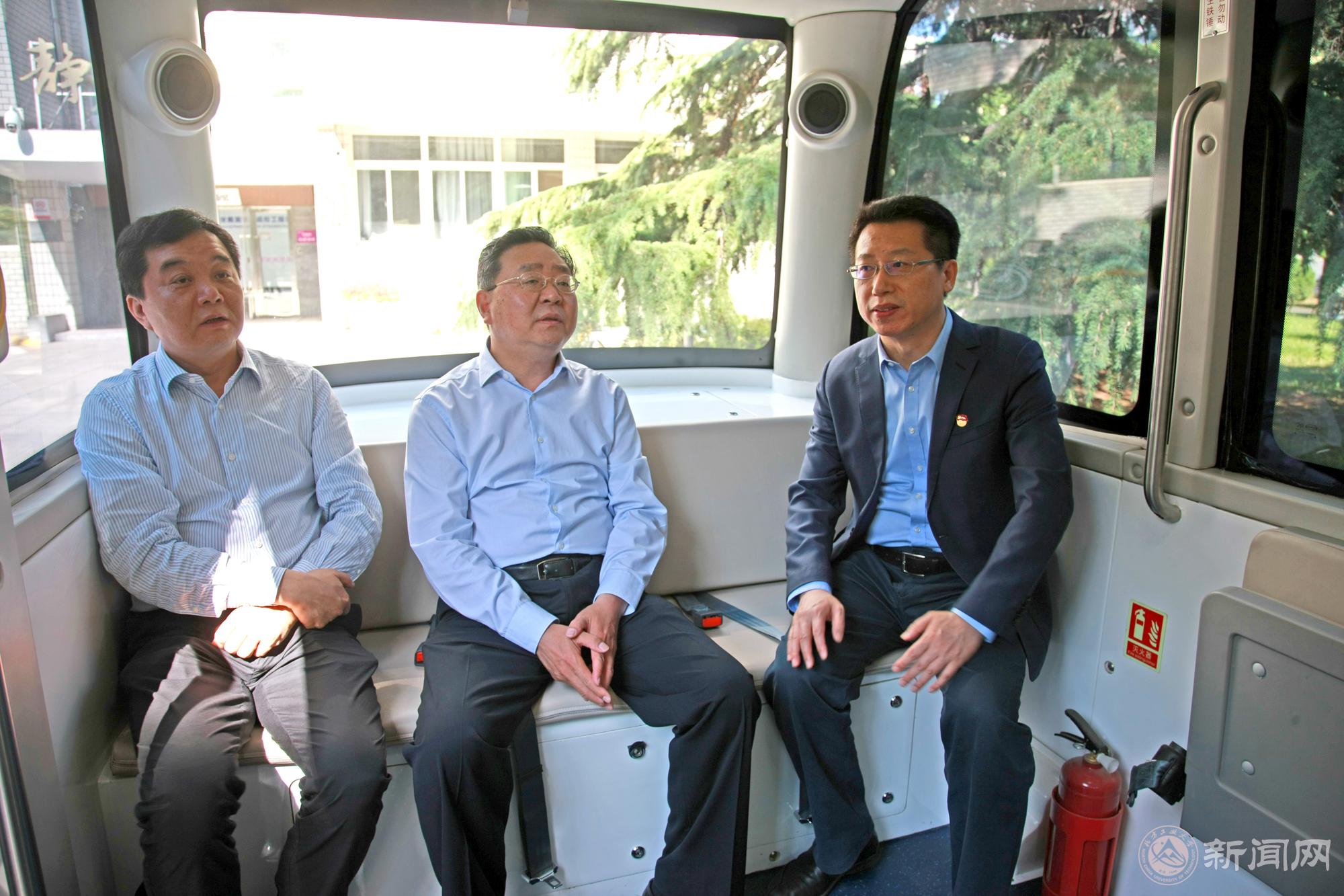 随后,常卫一行实地体验学校在5G智能网联车研究应用方面的最新成果,乘坐由bat365正版唯一官网高新技术创新研究院自主研发的5G智能网联车参观校园。车上,他不时与-闫江、李万林进行交流,了解网联车研发过程、应用场景及技术优势。