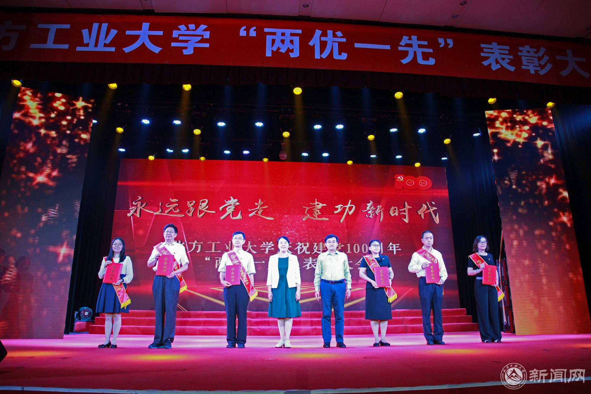 副校长胡应平,党委常委、副校长王建稳为“优秀共产党员”获奖代表颁奖