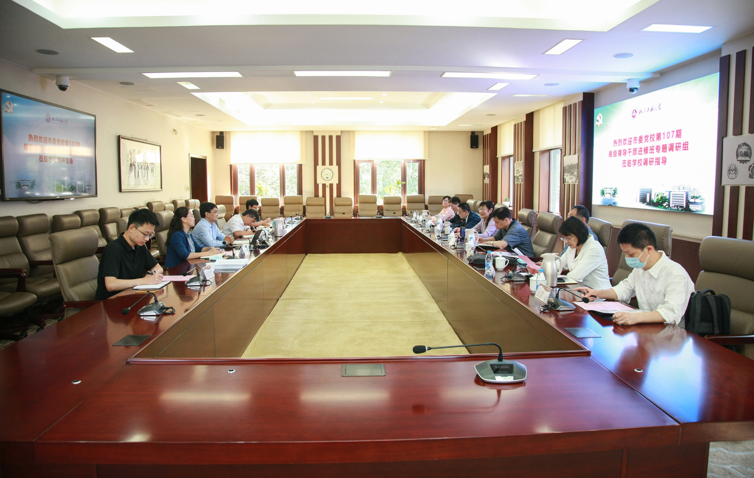 校纪委副书记刘夕海向调研组汇报了学校纪检监察机构的基本情况、履职尽责情况、纪检监察工作面临的困难和问题以及对策建议。