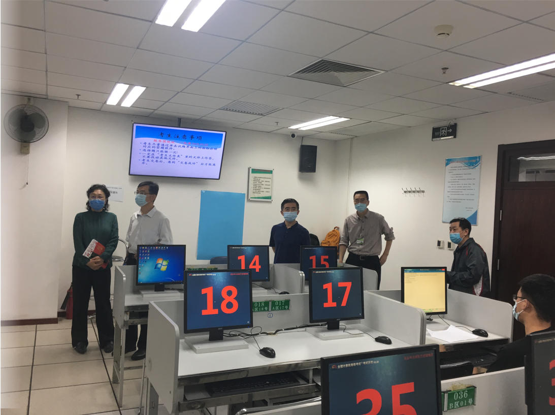 本次考试共计2400人次参加,人数创bat365组织该项考试新高。考生来源主要包括bat365学生、周边社会考生和北京军区的军人,对提高bat365学生计算机应用能力和服务北京、服务军队具有重要意义。栗苹副校长详细询问了考生来源、防疫工作、考务管理等方面的组织工作,并对每个考场以及备用考场进行了巡视。教务处和信息学院主要负责人陪同作现场指导。