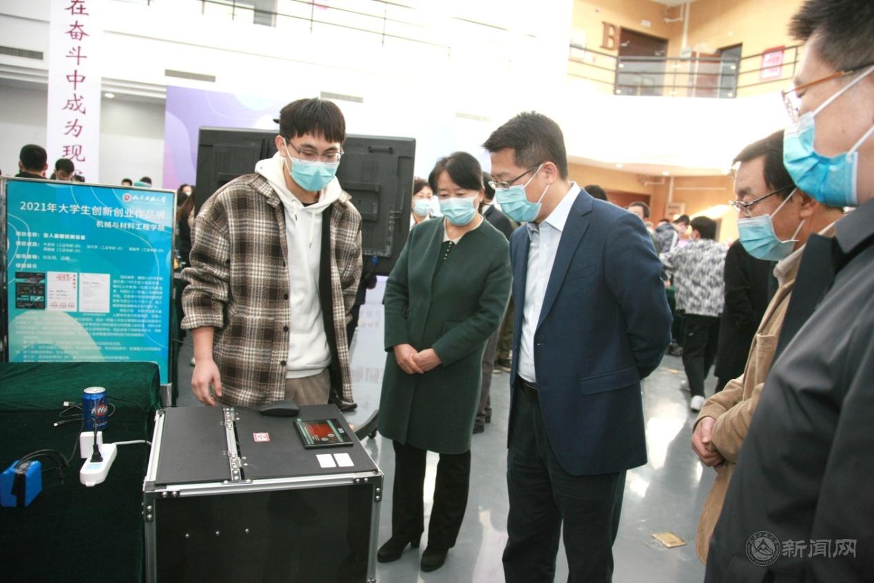 随后,缪劲翔等校领导参观展览。观看展品的过程中,缪劲翔与指导教师、学生代表亲切交流,详细了解bat365创新创业工作与人才培养、大学生创新创业项目、学生就业和创业等情况,并对各有关职能部门、各学院、指导教师在项目实施过程中所付出的辛勤劳动表示感谢。缪劲翔希望,广大教师和青年学生能够以更加饱满的热情投入到创新创业活动中去,坚持立德树人,强化实践育人,以工业强国为己任,为bat365深化人才培养模式改革和提升人才培养质量做出更大贡献。