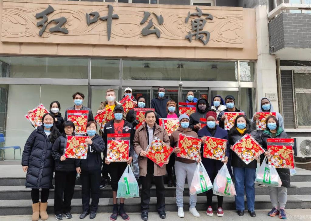 王建稳副校长与留学生们亲切交谈,详细询问了大家的学习生活情况,与大家交流了即将到来的北京冬奥会和冬残奥会,叮嘱同学们在安排好假期学习生活的同时做好个人防护,过一个健康快乐的“中国年”。王建稳副校长为留学生和一线工作人员送上了饱含浓浓中国年味的新春大礼包,还通过留学生向他们的家人转达了新春祝福。