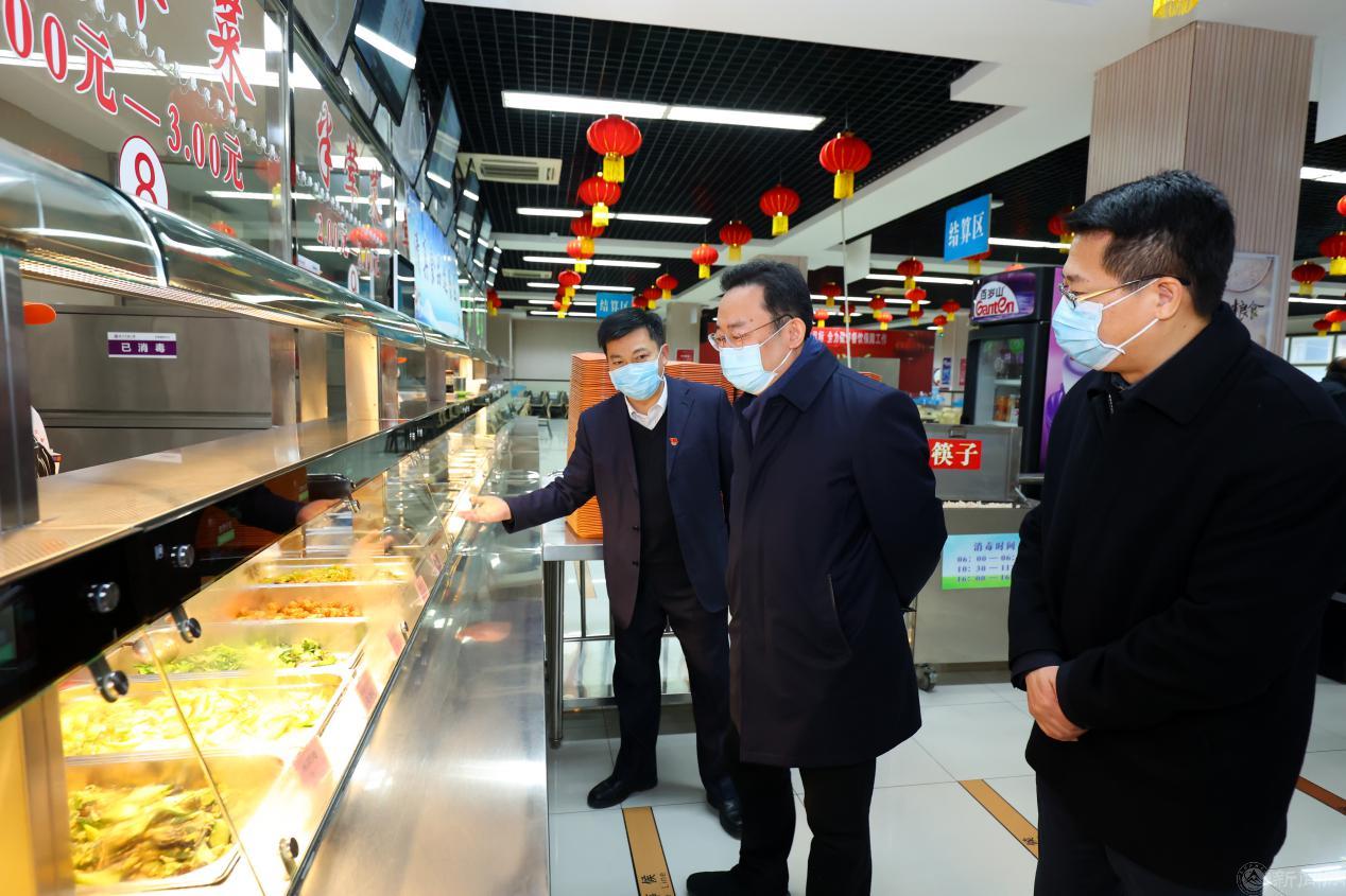 在毓秀餐厅基本伙食堂,夏林茂检查了学校食堂疫情防控和春节期间生活服务保障工作,听取学校冬奥餐饮保障、人员疫情防控和冷链食品管理、原材料保障等方面的工作汇报。他要求,要进一步做好各个环节的工作,提高服务保障水平,确保在校学生志愿者和教职工过一个安全、暖心的春节。