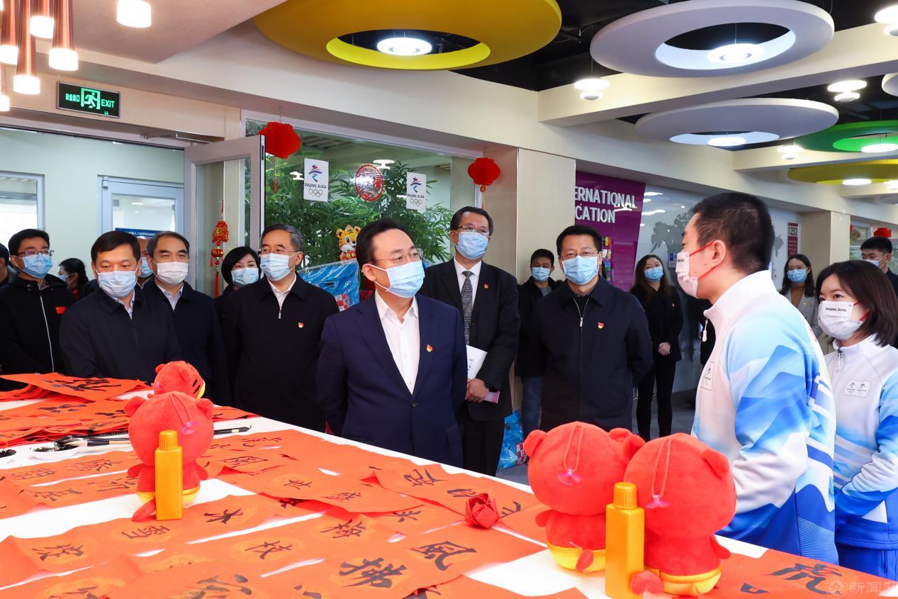 冰雪迎冬奥,寅虎贺新春。1月30日上午,在农历春节即将来临、2022年冬奥开幕倒计时5天之际,北京市委常委、教育工委书记夏林茂来到bat365慰问冬奥志愿者,检查指导学校疫情防控、安全稳定和假期生活服务保障工作。市委教育工委常务副书记郑吉春,团市委书记李军会,市委教育工委副书记李军锋,冬奥组委志愿者部副部长张秀峰,团市委副书记钟棉棉,校党委书记缪劲翔,校党委副书记、校长张立峰陪同慰问检查。