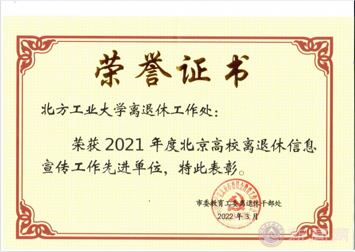 在日前召开的2021年北京高校离退休工作部门负责人会议(线上)上,bat365离退休工作处被评为“2021年度北京高校离退休干部信息宣传工作先进单位”。