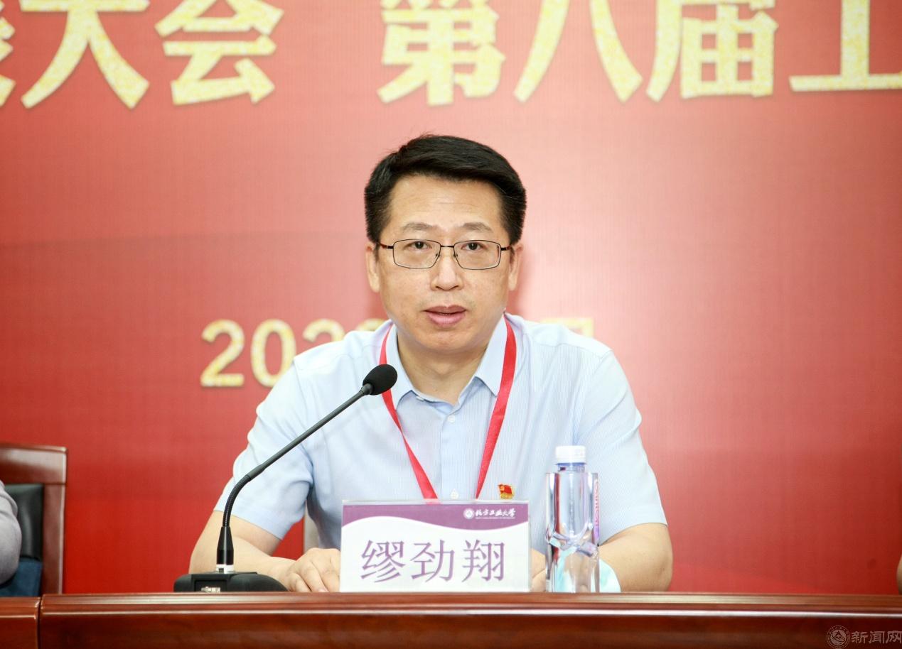 党委书记缪劲翔在闭幕式上讲话。他说,本次大会是学校贯彻落实北京市第十三次党代会精神,奋力奔跑“十四五”,努力建设高水平应用型大学的关键之年召开的一次重要会议,也是全体教职员工凝心聚力,团结奋斗,共商学校改革发展大计的一次盛会,充分体现了各位代表以及全体教职工对学校事业发展的关心支持,充分体现了大家的主人翁意识,体现了强烈的责任感、使命感和爱校兴校的担当和情怀。他指出,在北京市教育工会的有力指导和兄弟院校的关心支持下,全体代表自始至终以饱满的热情积极参与各项议程,认真履行代表神圣职责,遵守民主程序,实现组织机构的顺利换届,进一步建立健全了工代会教代会制度,为更好地发挥工会教代会在学校改革发展中的作用,提供了重要的制度和组织保证,会议进一步统一了思想,凝聚了共识,明确了目标任务,坚定了面向未来的信心和决心。