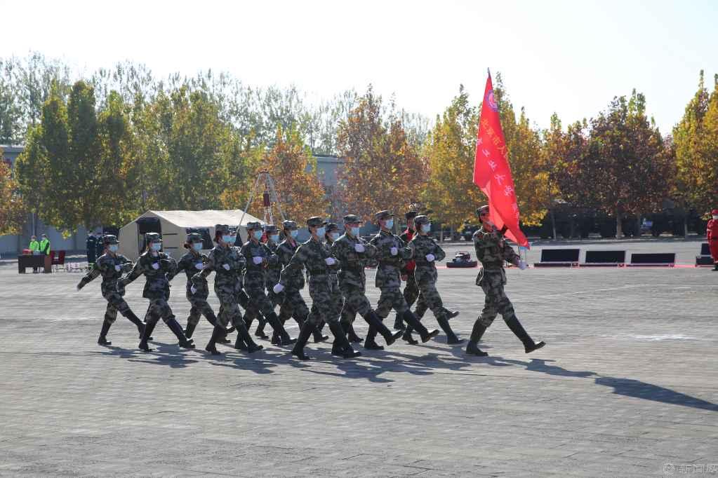 在高校方阵入场展示比赛中,由15名第六届国旗班队员组成的方阵表现优秀,荣获团体“风尚奖”。学校第六届国旗班班长李浩东同学代表全体参赛高校队员在总决赛开幕式上发言。
