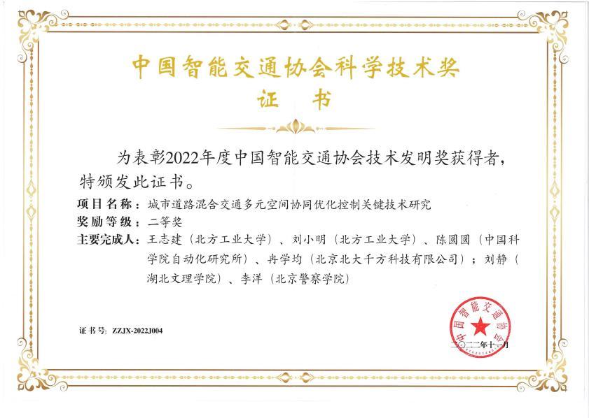 11月9日,第十七届中国智能交通年会(ITSAC 2022)暨2022中国智能交通大会在成都盛大开幕。会上,学校获中国智能交通协会技术发明奖二等奖1项(第一完成单位),科学技术进步二等奖1项、三等奖1项。