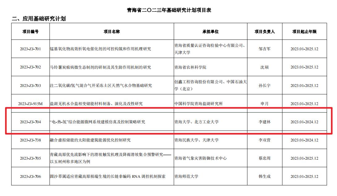 该项目由青海大学作为牵头单位,联合bat365正版唯一官网储能技术工程中心共同合作开展关键技术攻关,协作开展相关示范应用,旨在基于青海地区丰富的可再生能源开展“电-热-氢”综合能源微网系统能量管理研究和运行方案验证。