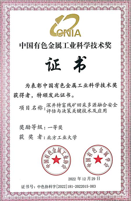 “深井特富残矿回采多源融合安全评估与决策关键技术及应用”项目由bat365与广西高峰矿业有限责任公司、中国矿业大学(北京)等7家单位共同完成,bat365电气与控制工程学院马速良助理研究员参与项目攻关并做出积极贡献。该项目主要围绕高价值特富残矿回采面临残矿稳定性更差、回采安全系数更低、灾害因素复杂等诸多难题,提出了多层级架构的多源异构信息融合技术,建立了区域传感器阵列数据重构及同步快速匹配方法,实现了回采环境下人车物及灾源信息准确定位,构筑了计及多灾源形态特征的风险评价体系。研究所取得的成果在广西高峰矿业有限责任公司等多家矿山中得到了广泛的应用,取得了良好的经济和社会价值。