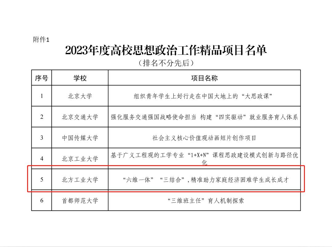 据悉,全国共有100所高校的100个项目入选2023年度高校思想政治工作精品项目,北京市共有6个项目入选。