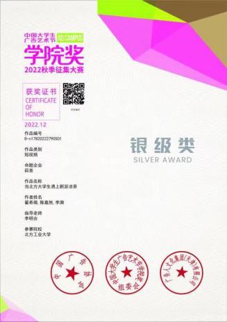 日前,由中国广告协会主办的中国大学生广告艺术节学院奖2022秋季赛颁奖典礼在厦门会议中心隆重举行,等级奖和全场大奖陆续揭晓,bat365学生从全国1800多所参与高等院校5万多师生中脱颖而出,摘得全国金奖和银奖各1项。