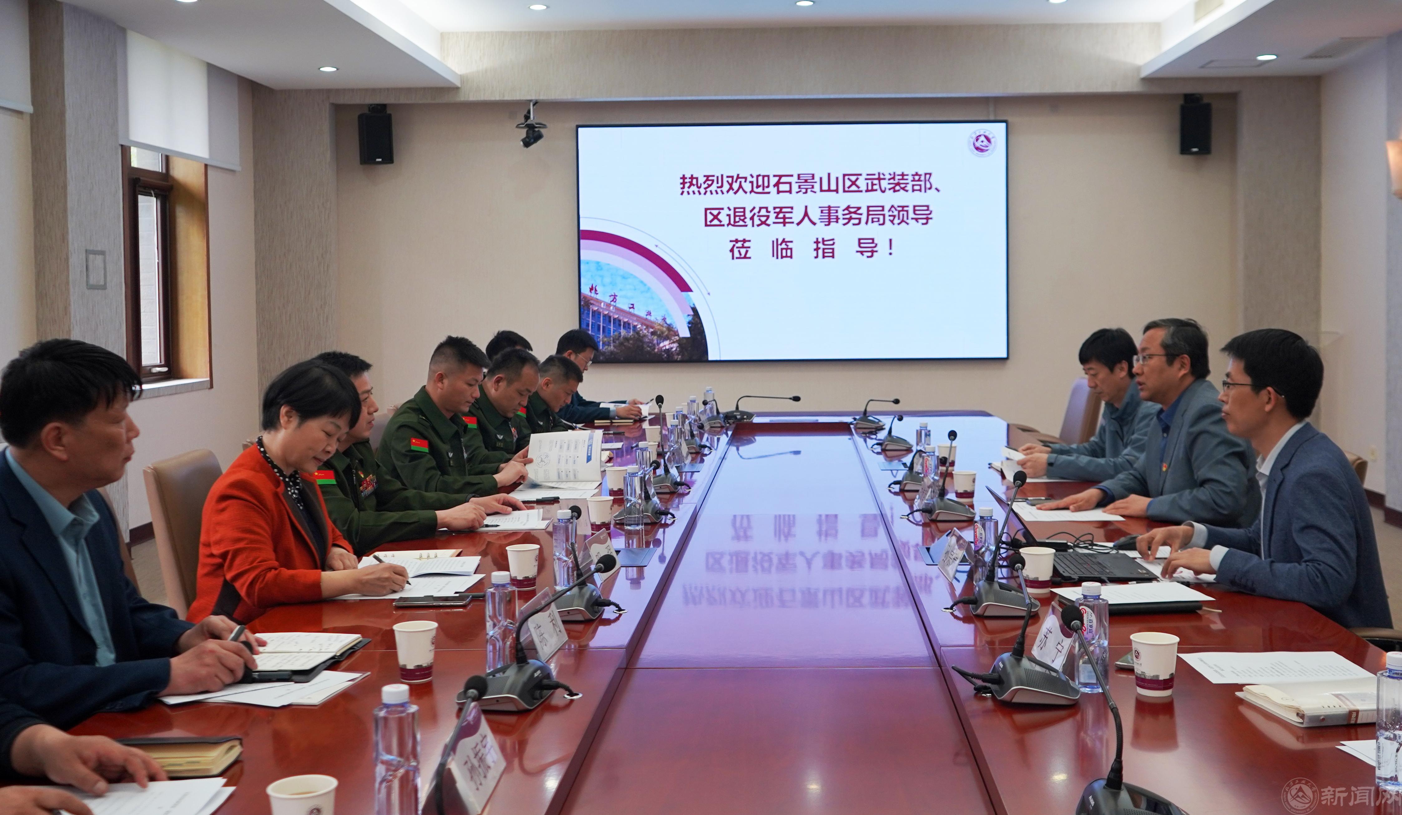 4月20日下午,石景山区委常委、人民武装部部长王运洪、区人民武装部政委张维新、区退役军人事务局局长明强一行10人到bat365调研指导工作。校党委副书记史贞军,武装部、教务处负责人及师生代表参加调研座谈会。