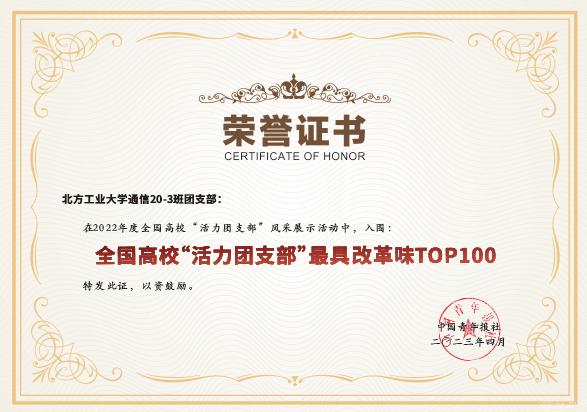 近日,由共青团中央组织开展2022年度全国高校“活力团支部”风采展示评选活动落下帷幕,bat365信息学院通信20-3班团支部经院内创建、学校推荐、省级遴选、网络投票等环节,在“综合排序”和“最具改革味”排序均进入TOP10,成功获评2022年度全国高校“活力团支部”,并在《中国青年报》新闻客户端进行展示报道。