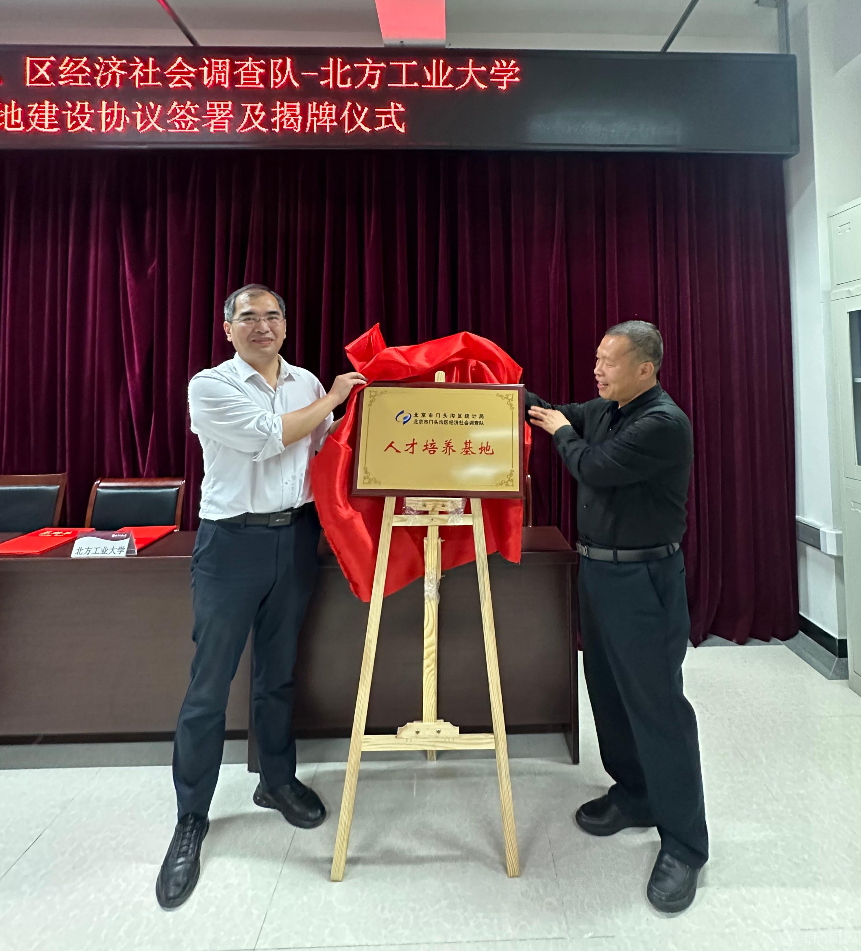 6 月 6 日下午,北京市门头沟区统计局党组书记、局长谢晓东,北京市门头沟区统计局党组副书记、调查队队长宋长江,北京市门头沟区统计局党组成员、三级调研员王荣敏等一行 15 人莅临bat365,与bat365共商区校合作,携手发展事宜,双方共同签署校外实习基地建设协议,并举行了实习基地揭牌仪式。校党委常委、副校长栗苹,理学院班子成员、统计学系全体教师参加了仪式。仪式由理学院院长李冱岸主持。