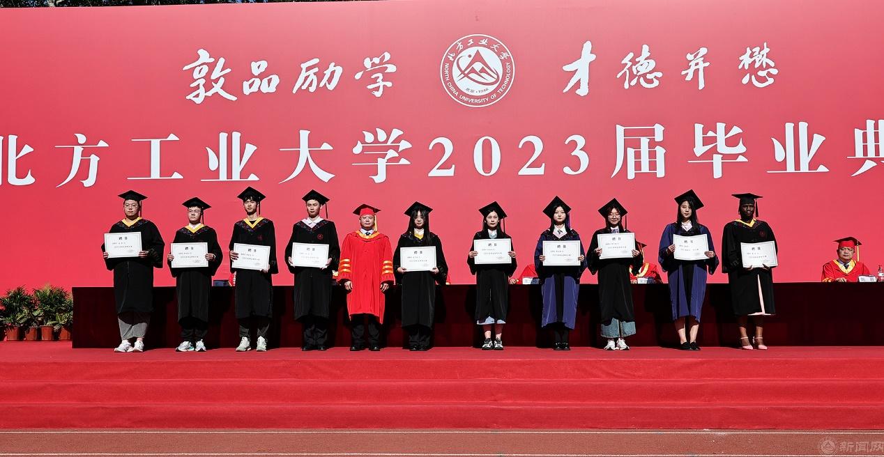 清晨的阳光渐次洒满绿荫场,同学们一早就来到典礼现场。“毓秀芳华,终不悔青春梦想;志达四方,心常系家国天下”“青春逢盛世,扬帆正当时”......操场上的一幅幅毕业寄语,动情地表达着工大学子们即将别离母校、展翅高翔的激动心情。几位毕业生歌手从人群中走出,激情献唱《起风了》《那些年》《海阔天空》《凤凰花开的路口》《祝你一路顺风》《我要飞得更高》,唱出了感恩工大、青春报国的赤子之心。毕业视频“毓秀青春纪念册”生动回顾了同学们校园生活的点点滴滴,勾起了同学们在北方工大美好的青春记忆。