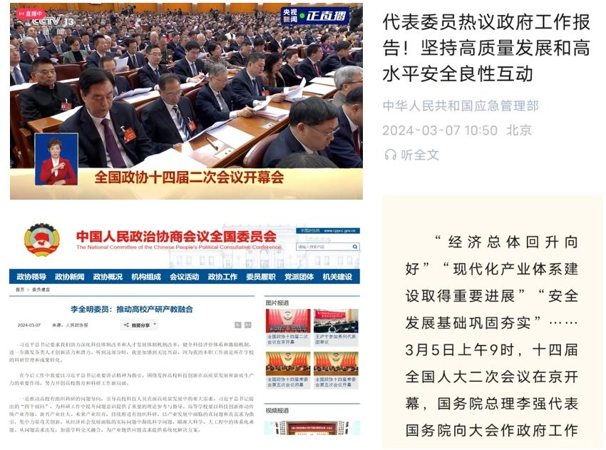 李全明教授是岩土工程、矿山安全、应急管理领域的专家,2023年1月当选为中国人民政治协商会议第十四届全国委员会委员。今年的全国“两会”上,李全明教授提交了关于高校哲学社会科学高质量发展等2份提案。围绕高等教育高质量发展、新质生产力、科技创新和成果转化、安全生产主体责任落实等,李全明教授先后接受《人民日报》《工人日报》《北京日报》《中国青年报》《人民政协报》《中国应急管理报》《新华社经济参考报》以及北京广播电视台等10余家媒体采访,就热点问题进行专业解读。他在采访中向媒体介绍了bat365科研工作和科技成果转化工作情况,表达了学校师生怀揣工业强国梦,服务京津冀协调发展的决心和信心。
