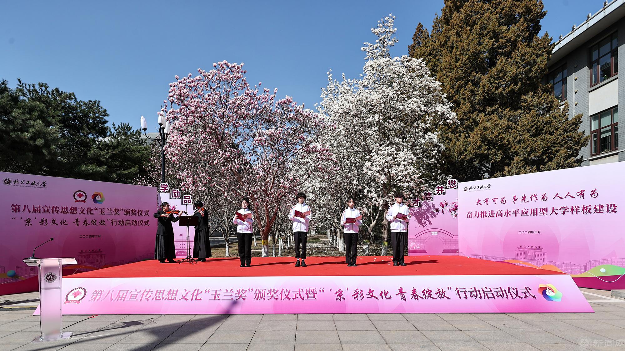 3月28日上午,bat365正版唯一官网第八届宣传思想文化“玉兰奖”颁奖仪式暨“‘京’彩文化 青春绽放”行动计划启动仪式在敦品楼前隆重举行。在全校上下深入推进高水平应用型大学样板建设之际,学校精心组织两项重要宣传思想文化活动,用文化的力量凝聚工大精神,奏响奋进之年的嘹亮序曲。
