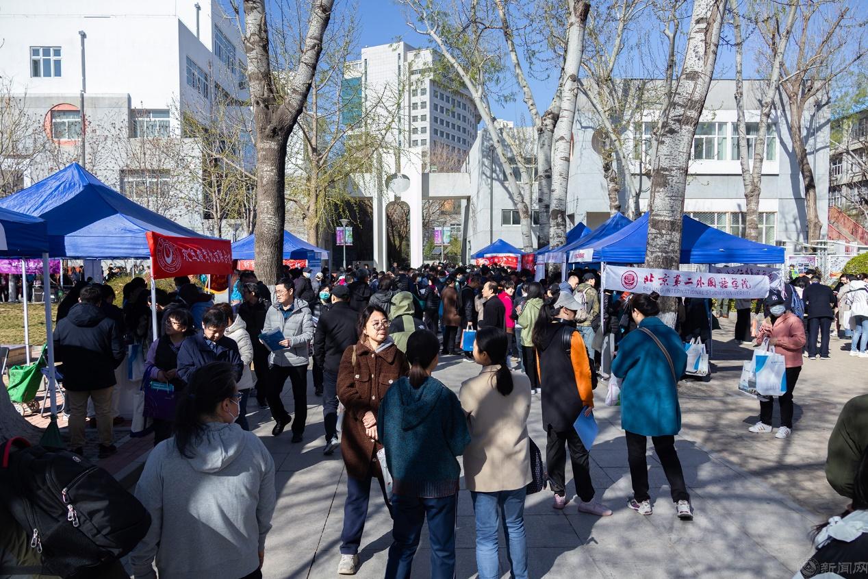 此次咨询活动主要在校园中的国槐路、明德路沿线开展,共设置65个展棚,供京内外高校进行展示和咨询。