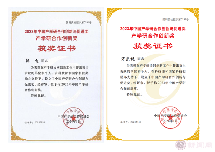 机械与材料工程学院的韩飞老师、电气与控制工程学院万庆祝老师被授予“中国产学研合作创新奖(个人)”。此奖项旨在表彰通过高水平科技自立自强和产学研深度融合,勇于创新、勇于实践,社会效益、经济效益等方面业绩突出,有完善的技术创新体系和成功案例的个人。