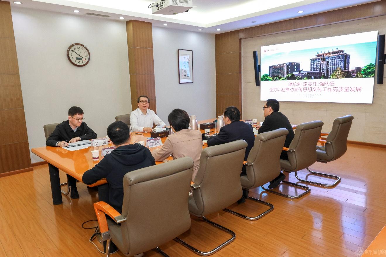 党委常委、宣传部部长高国伟从新时代宣传思想文化工作的使命任务、学校宣传思想工作现状、提升新闻宣传“时度效”、落实近期重点工作等四个方面进行详细汇报。