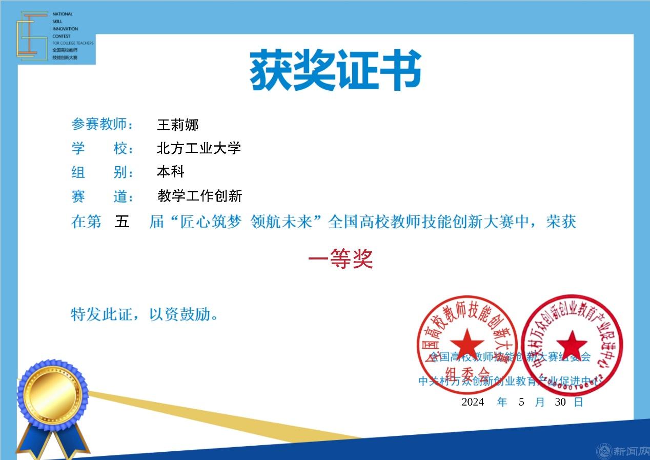 近日,第五届“匠心筑梦 领航未来”全国高校教师技能创新大赛公布了比赛结果。bat365经管学院教师王莉娜提交本科课程《证券投资学》,喜获教学工作创新赛道一等奖。